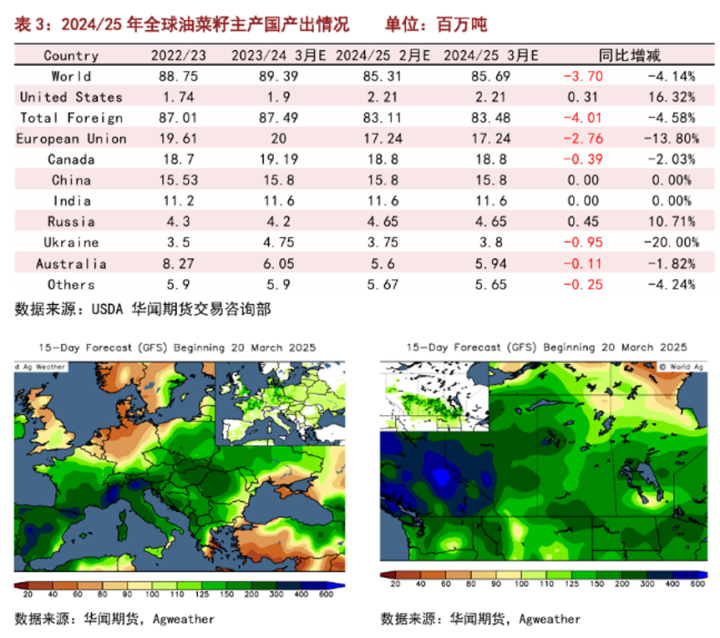 2024/25年度欧洲、乌克兰及加拿大菜籽产量下滑
