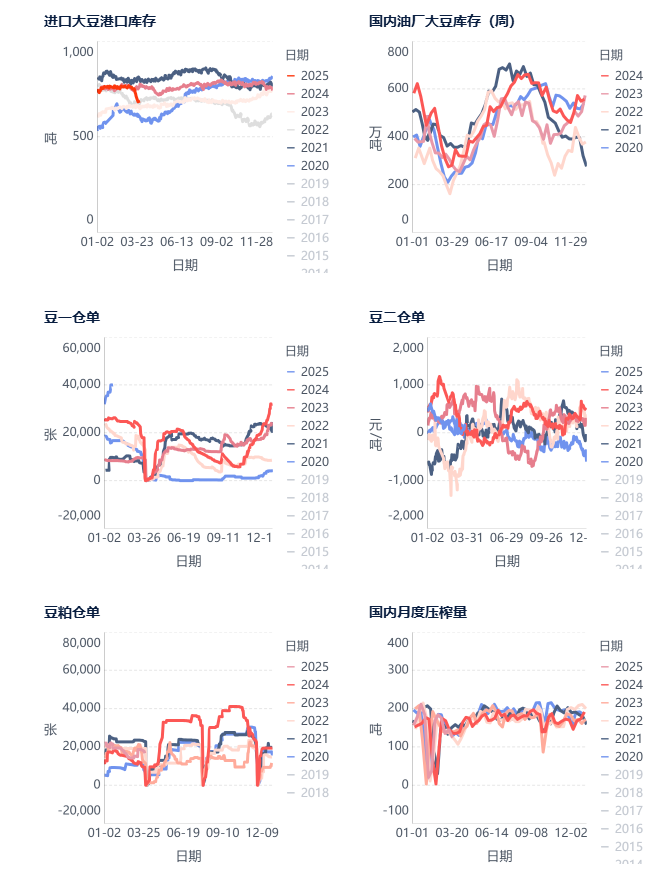 粮油商务网监测数据显示,截止到2025年第12周,全国大豆开机率为40.26%,低于第11周的43.56%,预计港口库存下降趋势会减缓。